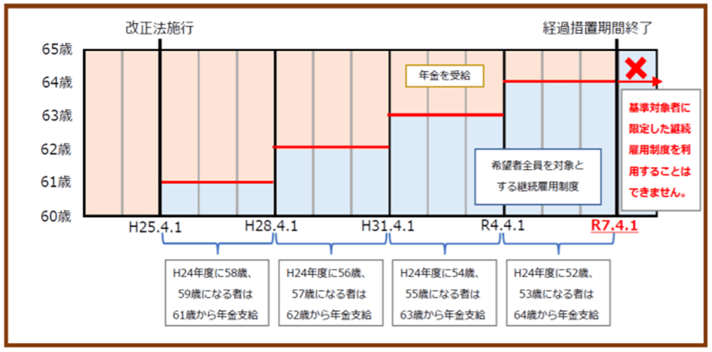 2025年4月以降、「継続雇用制度」の対象者を労使協定で限定できる仕組みが廃止されています