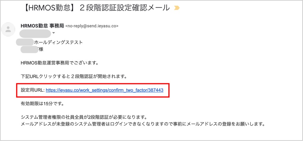 件 名:【HRMOS勤怠】2段階認証設定確認メール