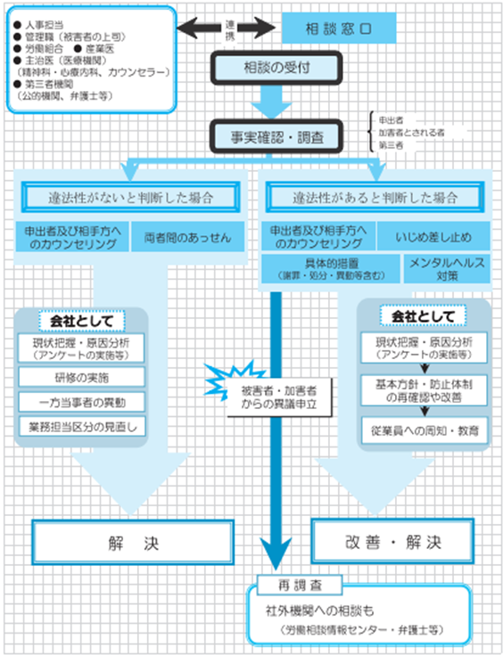 人員に限りのある小規模企業においては、相談窓口の設置や相談体制の構築・連携等対応に困る部分もあるでしょうが、社会保険労務士やカウンセラー等の外部窓口も積極的に活用しながら無理なく体制を整えていきましょう。