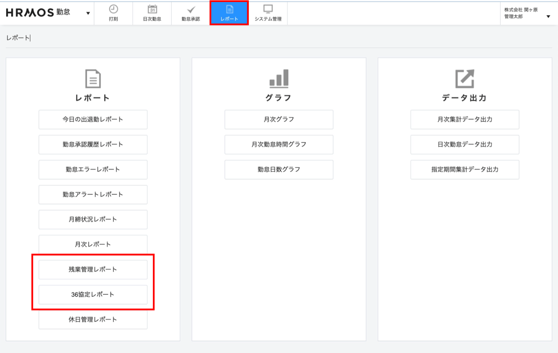 紐付けた36協定を元にしたレポートは以下の画面から確認できます。
