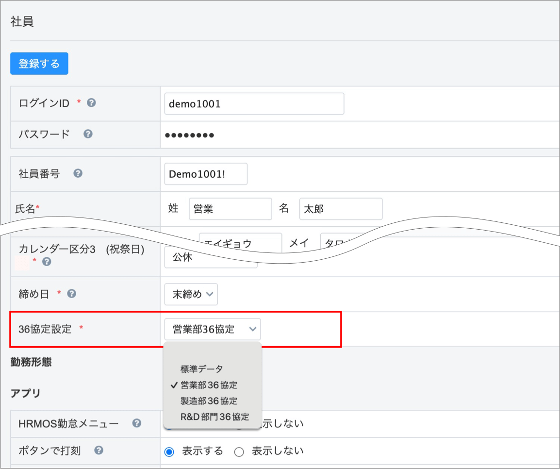 今回のリリースにより、複数の36協定を登録し、社員ごとに紐付けできるようになりました。