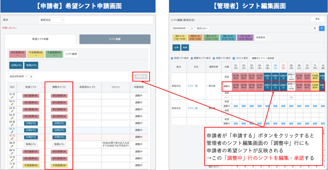 管理者がシフトを組みやすくなるような運用も可能ですので是非ご利用ください。