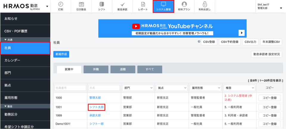 社員が追加されていることを確認してください。