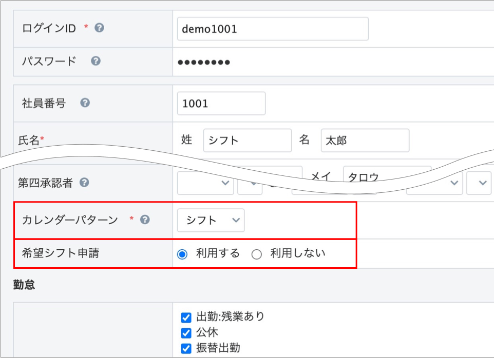 初期設定④申請させるシフトパターン・勤務区分の選択